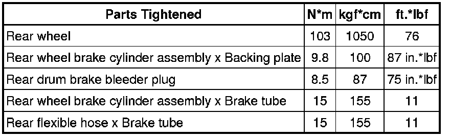 SPECIFICATIONS: BRAKE (REAR): TORQUE SPECIFICATIONS