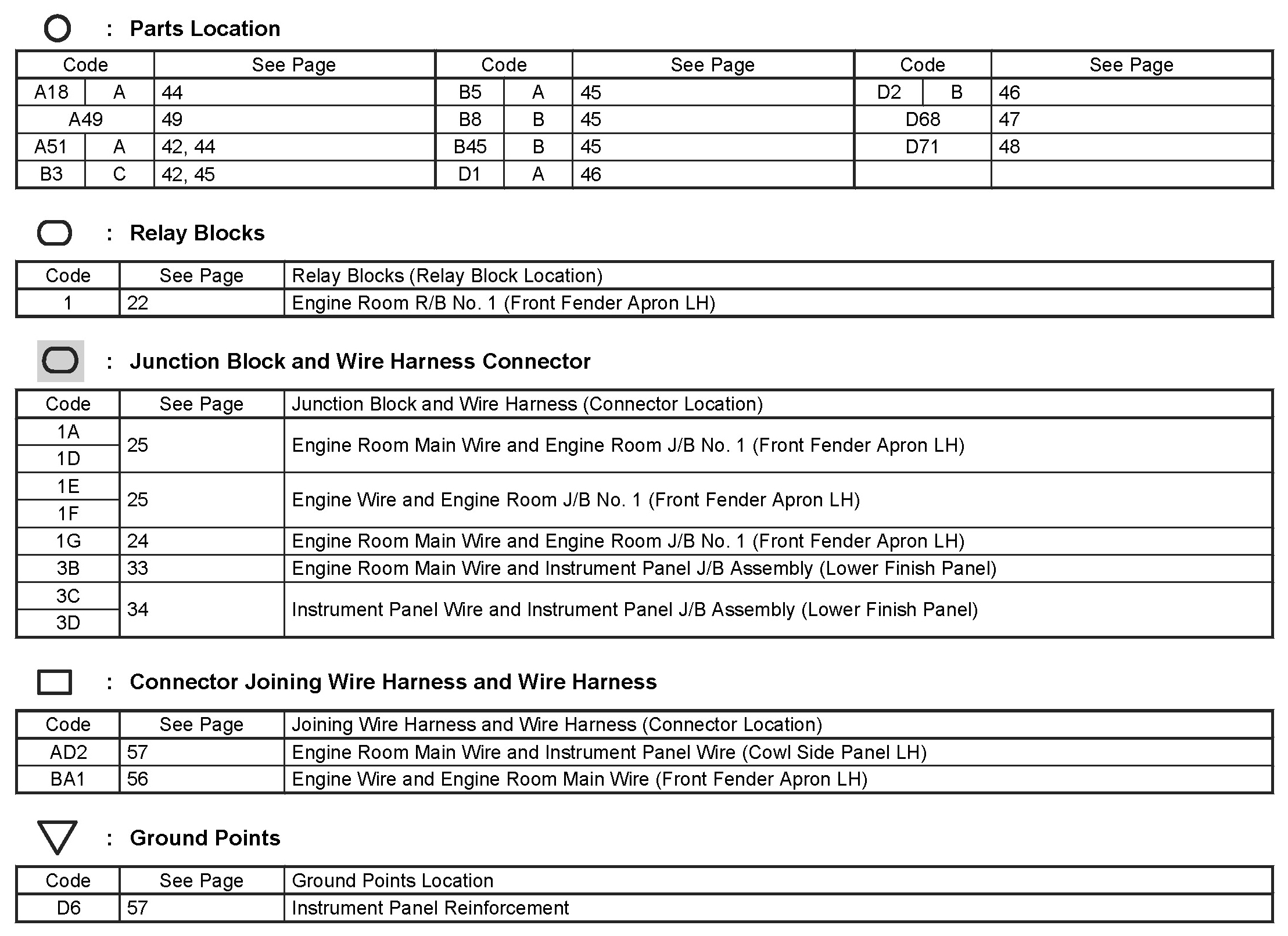Locations: The locations of components, connectors, ground points, and splices referred to within these diagrams can be found at Vehicle Locations. Locations