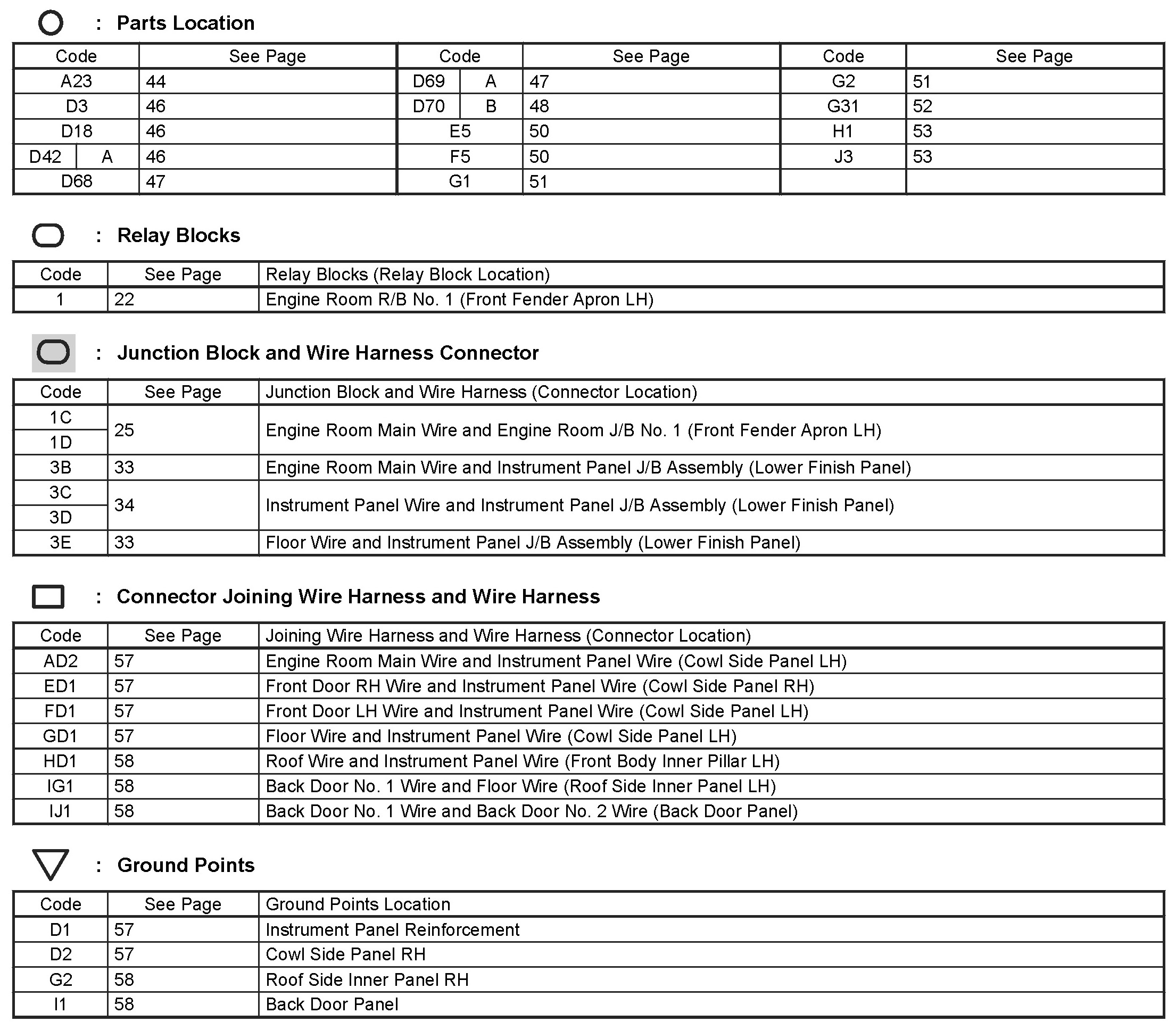 Locations: The locations of components, connectors, ground points, and splices referred to within these diagrams can be found at Vehicle Locations. Locations