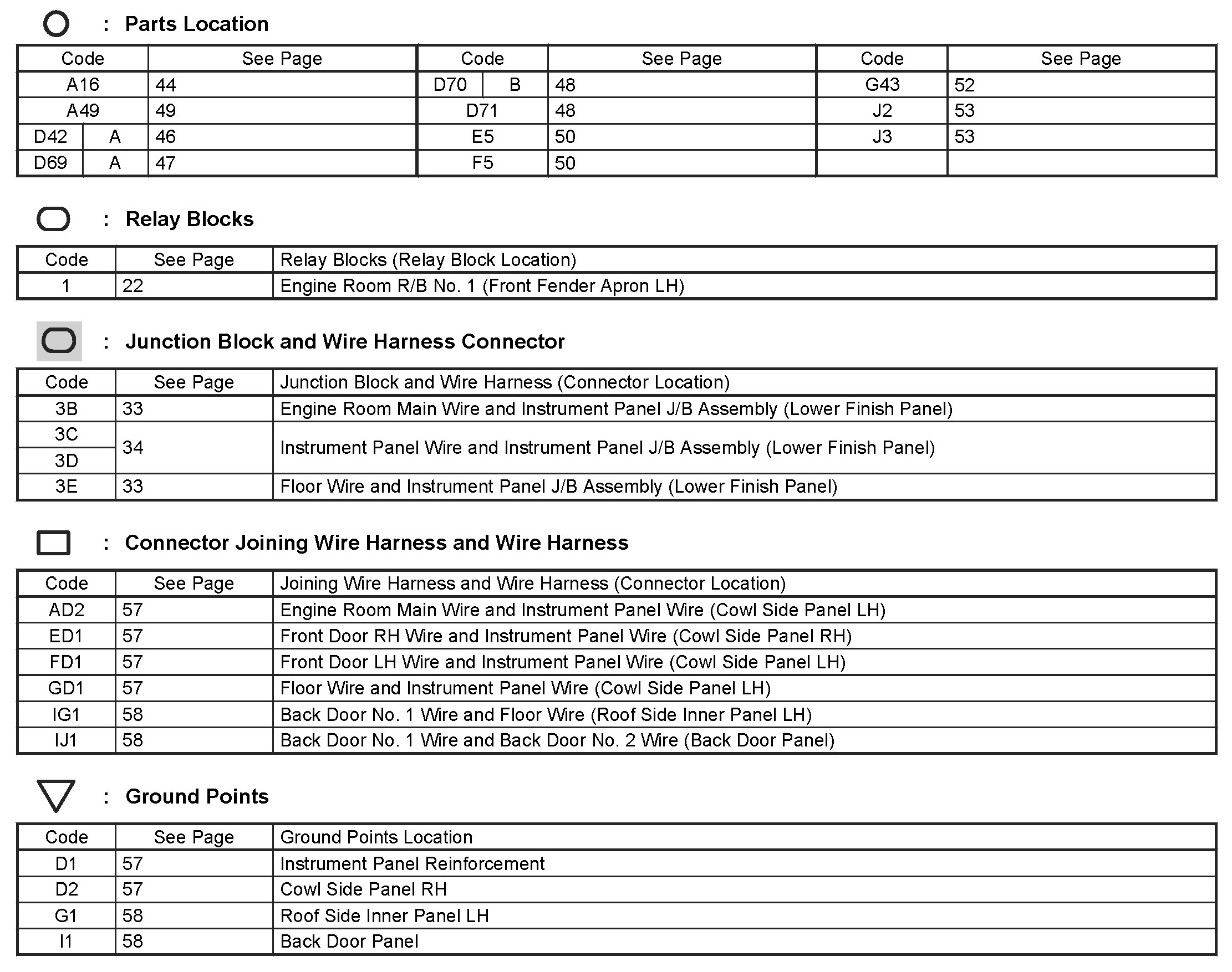 Locations: The locations of components, connectors, ground points, and splices referred to within these diagrams can be found at Vehicle Locations. Locations