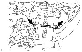 (b) Disengage the 2 clamps and separate the hood lock control cable.