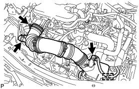 (d) Disengage the 2 clamps and 2 guides and remove the air cleaner and hose.