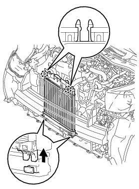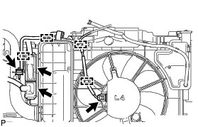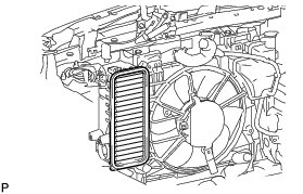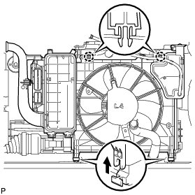 (a) Disengage the 2 claws on the condenser and remove the radiator from the vehicle.