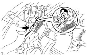 (a) Separate the hood lock control cable from the hood lock, as shown in the illustration.