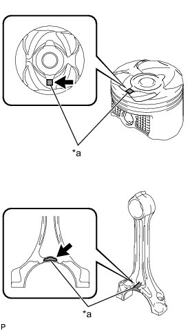(d) Check that the front mark of the connecting rod cap is facing in the correct direction.