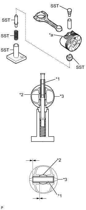 (d) Using SST, press in the piston pin.