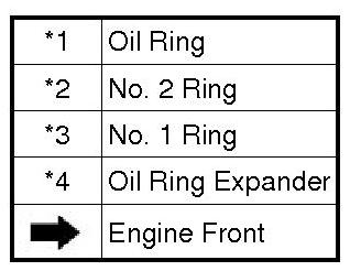 (b) Using a piston ring expander, install the No. 1 ring and No. 2 ring as shown in the illustration.