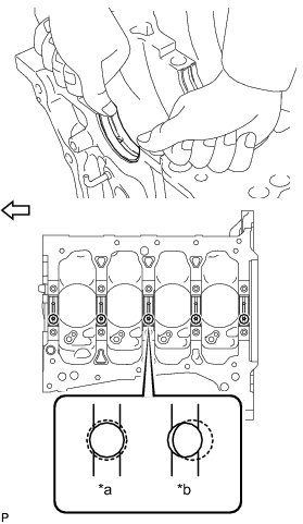 * Align the oil holes on the bearing and cylinder block.