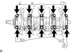 (e) Temporarily install the 10 main bearing cap bolts.