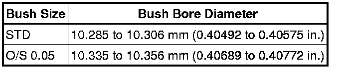 If the bush bore diameter of the cylinder head is greater than 10.306 mm (0.40575 in.), machine the bush bore to the dimension of 10.335 to 10.356 mm (0.40689 to 0.40772 in.) to install an O/S 0.05 valve guide bush. If the bush bore diameter of the cylinder head is greater than 10.356 mm (0.40772 in.), replace the cylinder head.