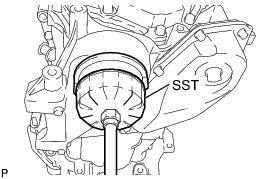 (a) Using a 24 mm deep socket wrench, remove the engine oil pressure switch.
