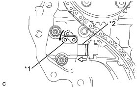 (e) Remove the 2 nuts and the No. 1 chain tensioner.