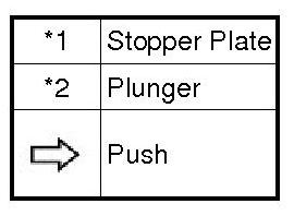 (b) Push down on the stopper plate to release the lock and push in the plunger.