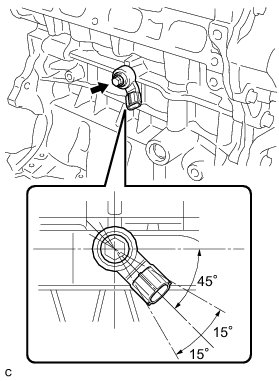 (b) Using a 24 mm deep socket wrench, install the oil pressure switch.