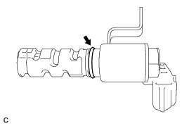 (a) Apply a light coat of engine oil to 2 new O-rings, and then install them onto the camshaft timing oil control valves.