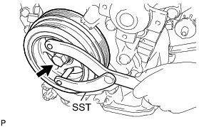 (a) Align the pulley set key with the key groove of the crankshaft pulley, and then slide on the crankshaft pulley.