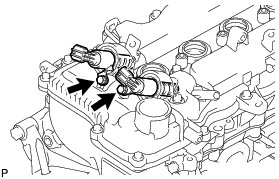 (e) Temporarily install the 2 No. 1 crankshaft position sensors with the 2 bolts.