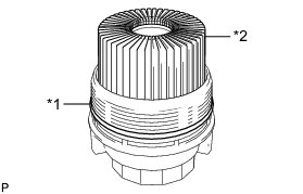 (b) Apply a small amount of engine oil to a new oil filter cap gasket and install it to the oil filter cap.