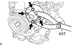 (a) Using SST, install the water pump pulley with the 4 bolts.