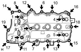 (f) Fully tighten the 19 bolts in the order shown in the illustration.