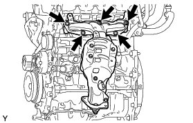 (b) Remove the exhaust manifold to head gasket from the cylinder head.