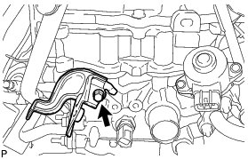 (b) Remove the bolt and the wiring harness clamp bracket from the cylinder head.
