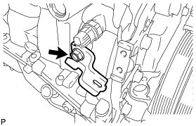 (c) Remove the bolt and the wiring harness clamp bracket from the cylinder block.