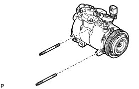 (b) Using an E8 "TORX" socket wrench, remove the 2 stud bolts and the compressor.