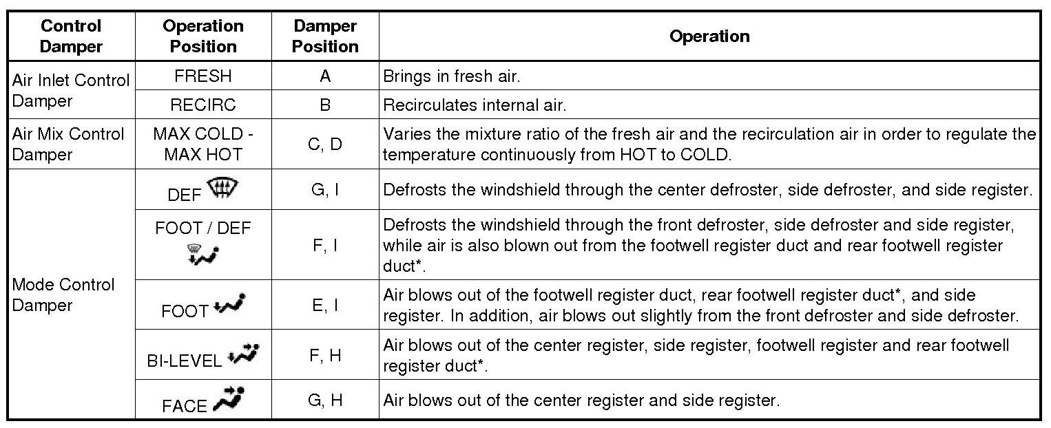 2. MODE POSITION AND DAMPER OPERATION