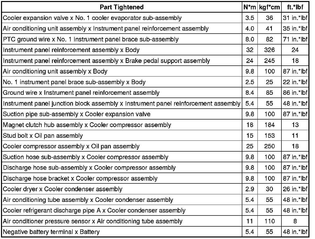 SPECIFICATIONS: HEATING / AIR CONDITIONING: TORQUE SPECIFICATIONS