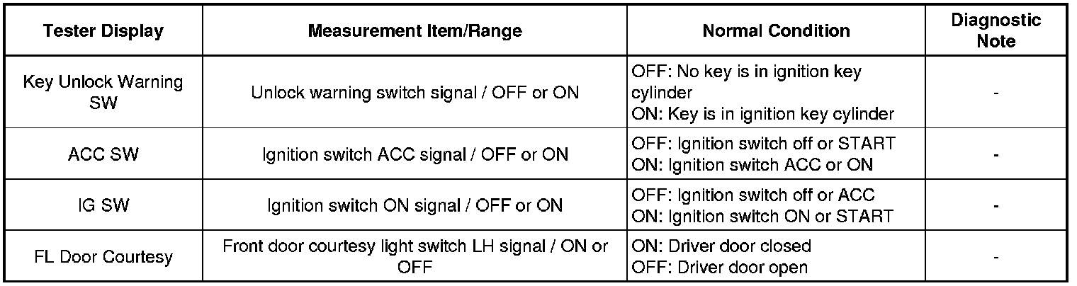DOOR LOCK: KEY REMINDER WARNING SYSTEM: DATA LIST / ACTIVE TEST
