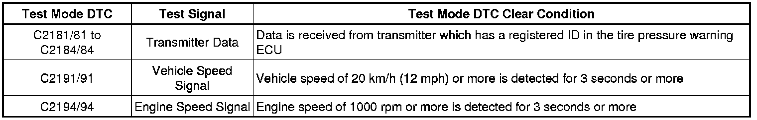 * When entering test mode (signal check mode), the tire pressure warning ECU sets all the test mode (signal check mode) DTCs first.