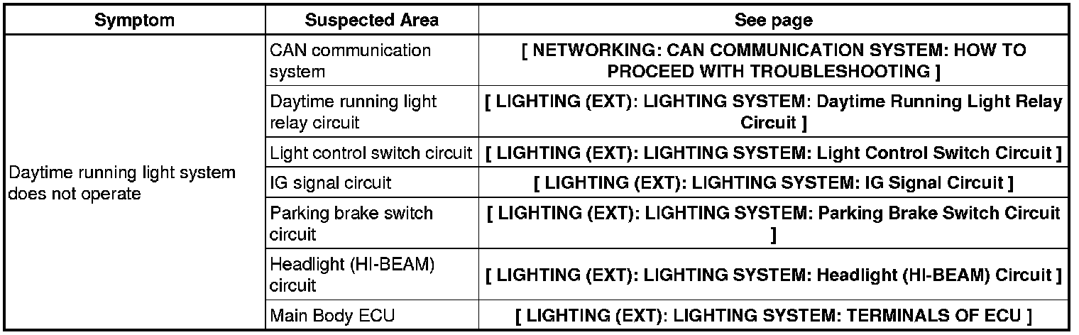 LIGHTING (EXT): LIGHTING SYSTEM: PROBLEM SYMPTOMS TABLE