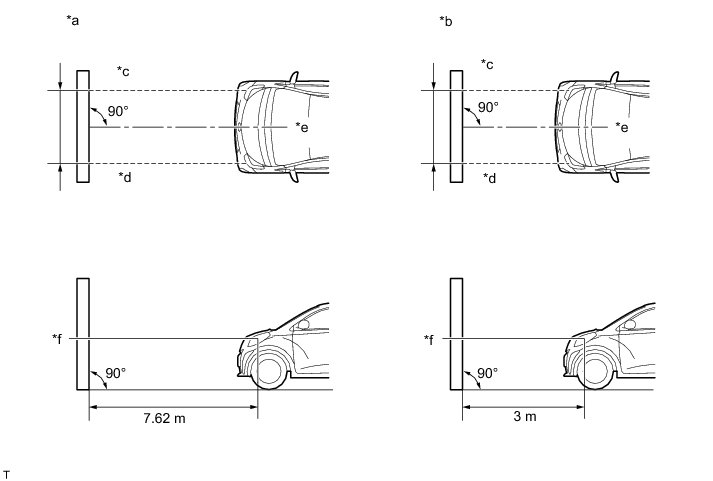 * Create a 7.62 m (25.0 ft.) distance between the vehicle (headlight bulb center) and wall.