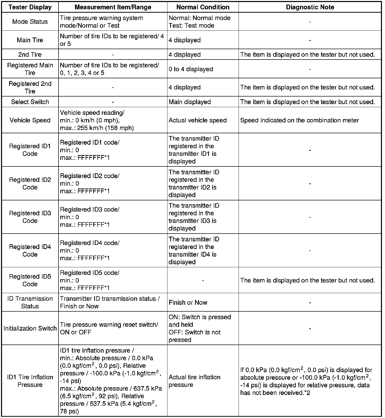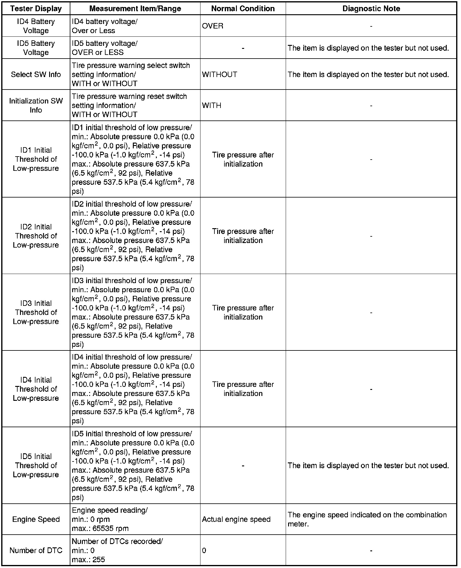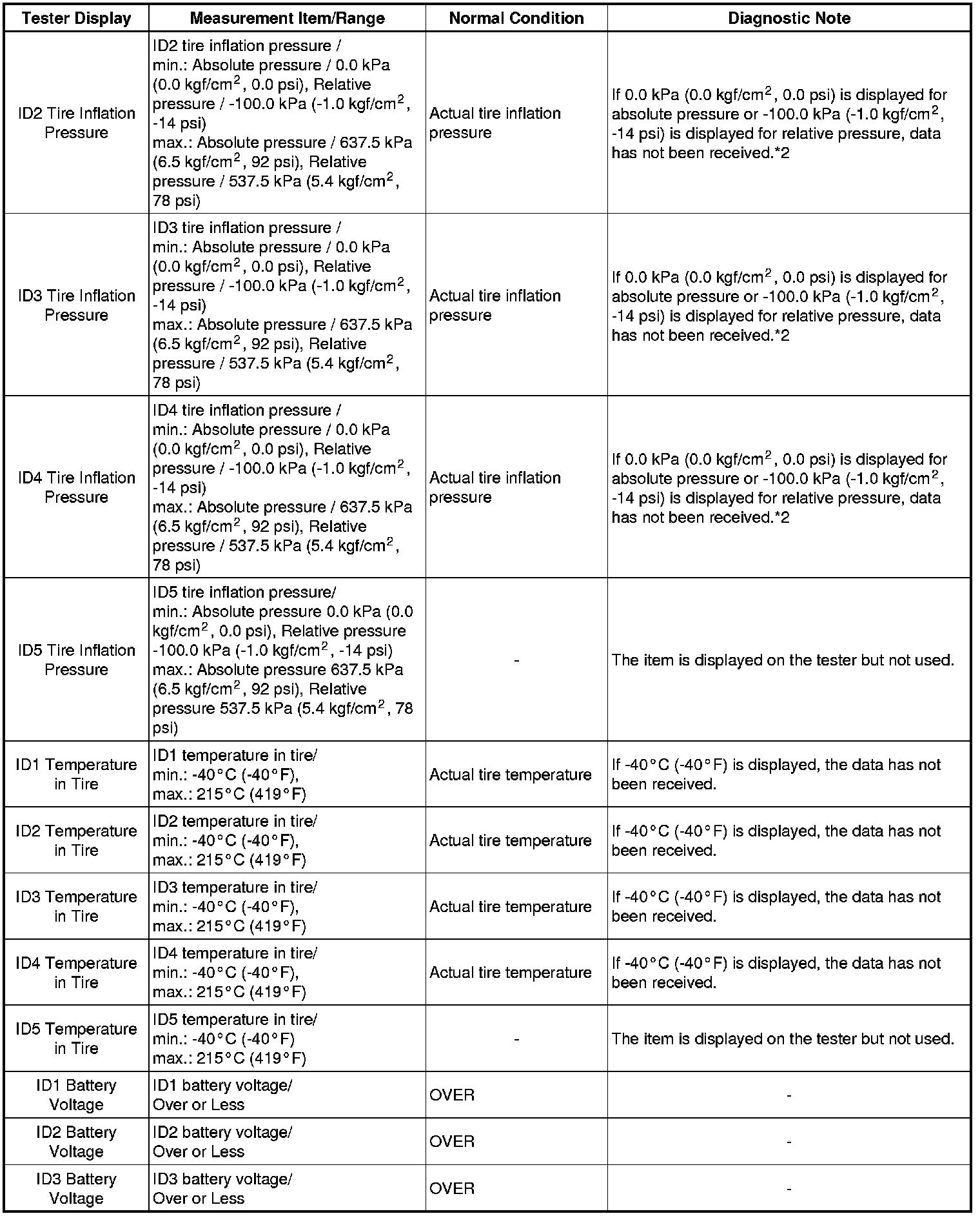 TIRE PRESSURE MONITORING: TIRE PRESSURE WARNING SYSTEM: DATA LIST / ACTIVE TEST