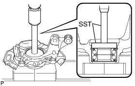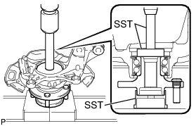 (a) Using SST and a press, insert a new hub bearing, with its magnetic rotor side facing the inside of the vehicle, until it reaches the end of the steering knuckle.