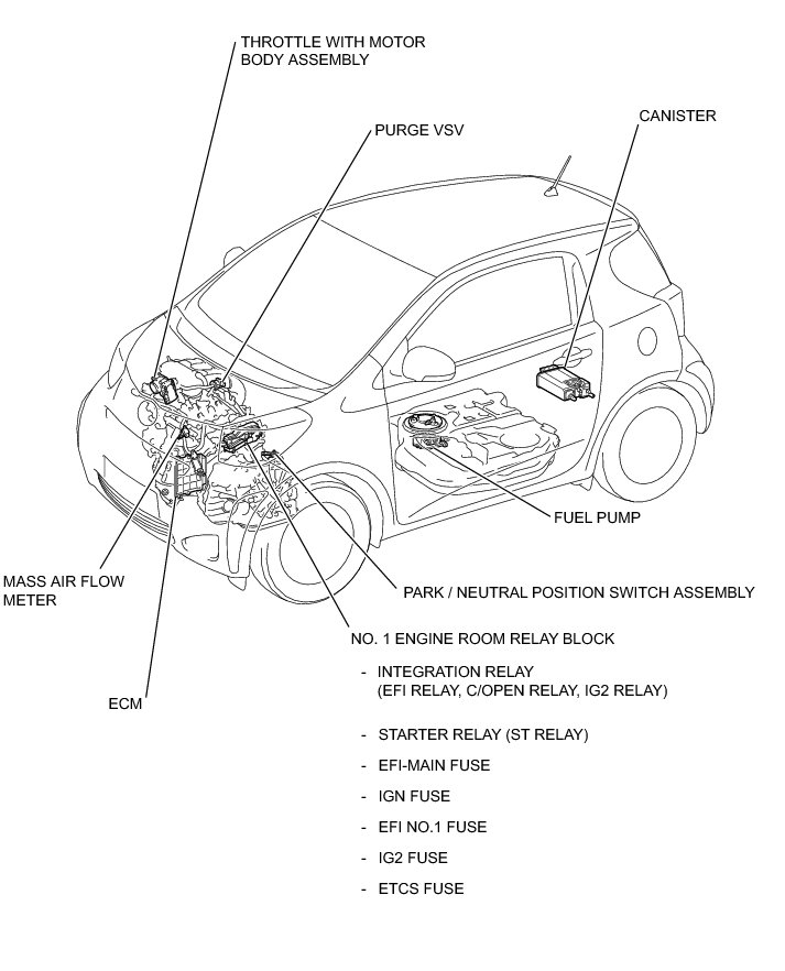 1NR-FE ENGINE CONTROL: SFI SYSTEM: PARTS LOCATION