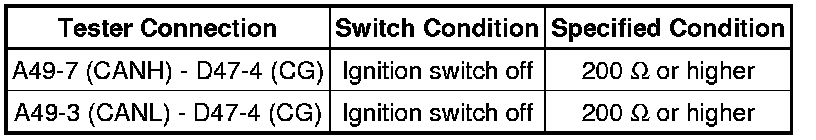 The resistance must be measured after the A49 CAN No. 1 junction connector is disconnected.