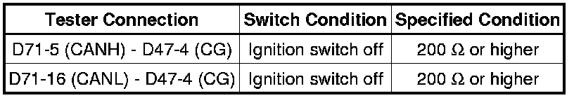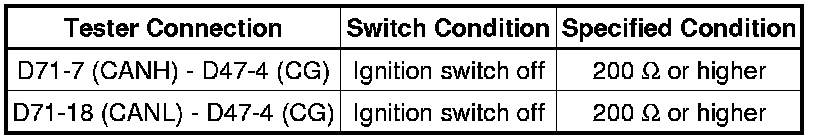 The resistance must be measured after the D71 CAN No. 2 junction connector is disconnected.