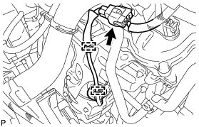 (b) Disconnect the connector of the air fuel ratio sensor connector.