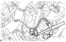 (c) Using SST, remove the air fuel ratio sensor from the exhaust manifold.