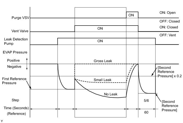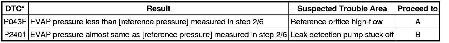 (b) Compare the EVAP pressure in step 3/6 and the second reference pressure (step 5/6).