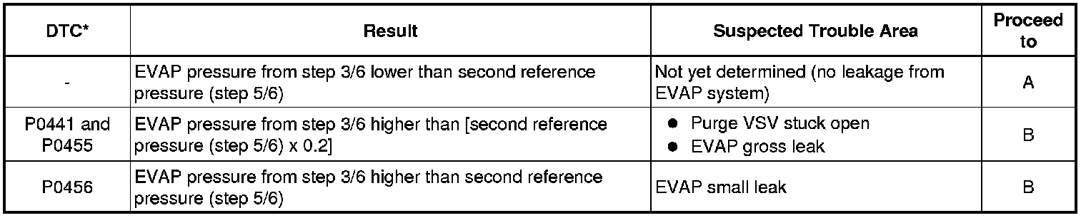 * *2: This result suggests that due to purge line blockage or purge VSV malfunction, the DTC was stored by the purge flow monitor while the engine was running, or that key-off monitor test result were nearly borderline values.