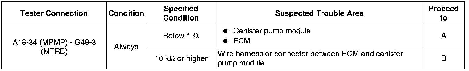 B -- INSPECT CANISTER PUMP MODULE (POWER SOURCE FOR VENT VALVE)