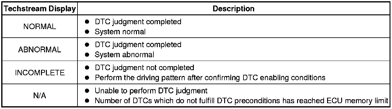 * With "All Readiness", you can check whether or not the DTC judgment has been completed by using the Techstream.