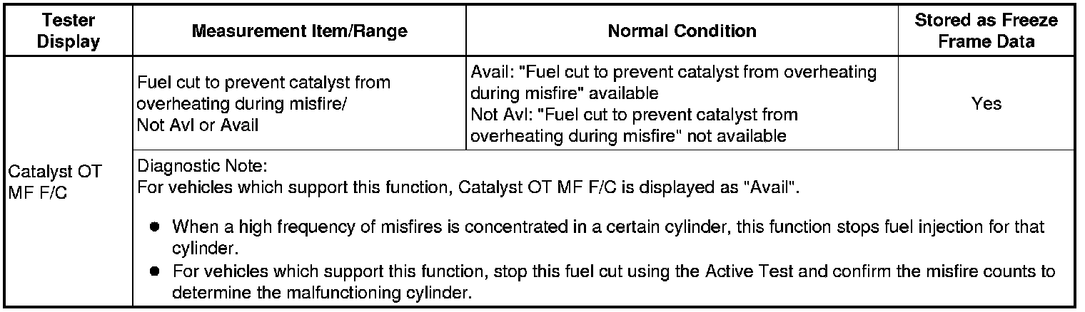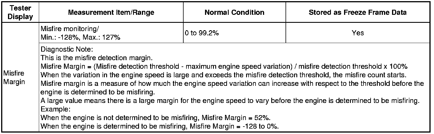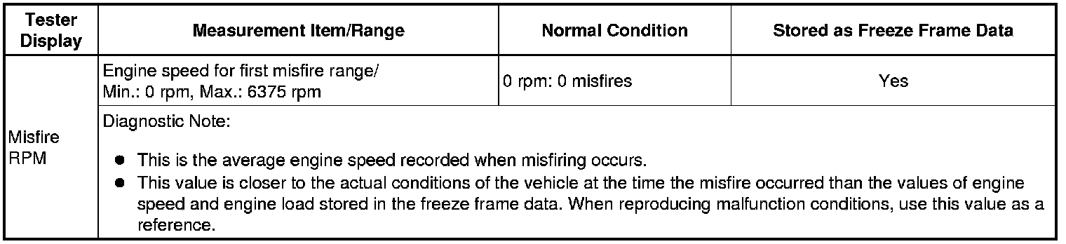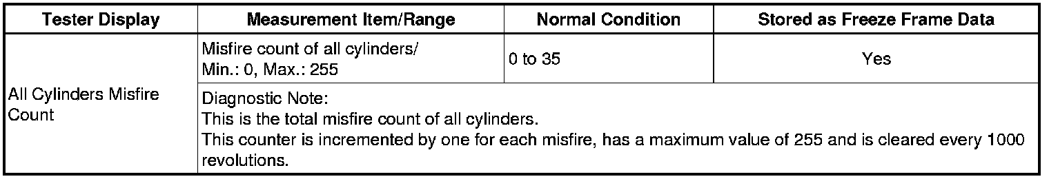 Cylinder #1 Misfire Count to Cylinder #4 Misfire Count