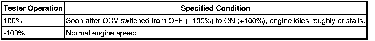 If the result is not as specified, check the camshaft timing oil control valve assembly, wire harness and ECM.