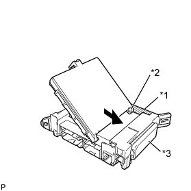 (b) While aligning the guide with the housing side wall, slide the main body ECU toward the fuse area of the junction block.