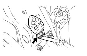 Loosen the bolt while holding the front airbag sensor RH because the front airbag sensor RH pin (stopper) is easily damaged.