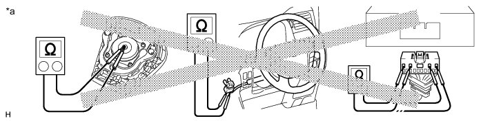(2) Never measure the resistance of the airbag squib. This may cause the airbag to deploy, which could cause serious injury.